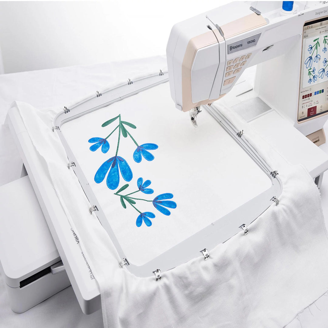 Für die DESIGNER EPIC ™ 3 Näh- und Stickmaschine. Sticken Sie extra große Projekte in einem Rahmen mit dem neuen 450x450 Mega Turnable Hoop. Dieser Stickrahmen wurde von Stickereiexperten für Stickbegeisterte entwickelt. Von den verstärkten Ecken bis hin zu den in den Stickrahmen integrierten Stoffgriffen werden Sie die Qualität jedes Mal spüren, wenn Sie sticken.