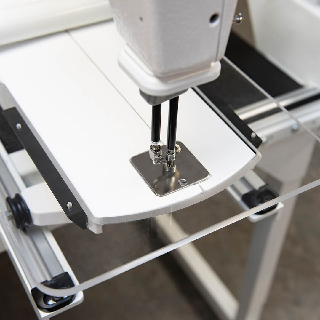 Dieser Lineal-Erweiterungstisch bietet zusätzliche Stabilität um den Nadelbereich herum, um Lineale und andere Schablonen beim Nähen und Quilten zu unterstützen.