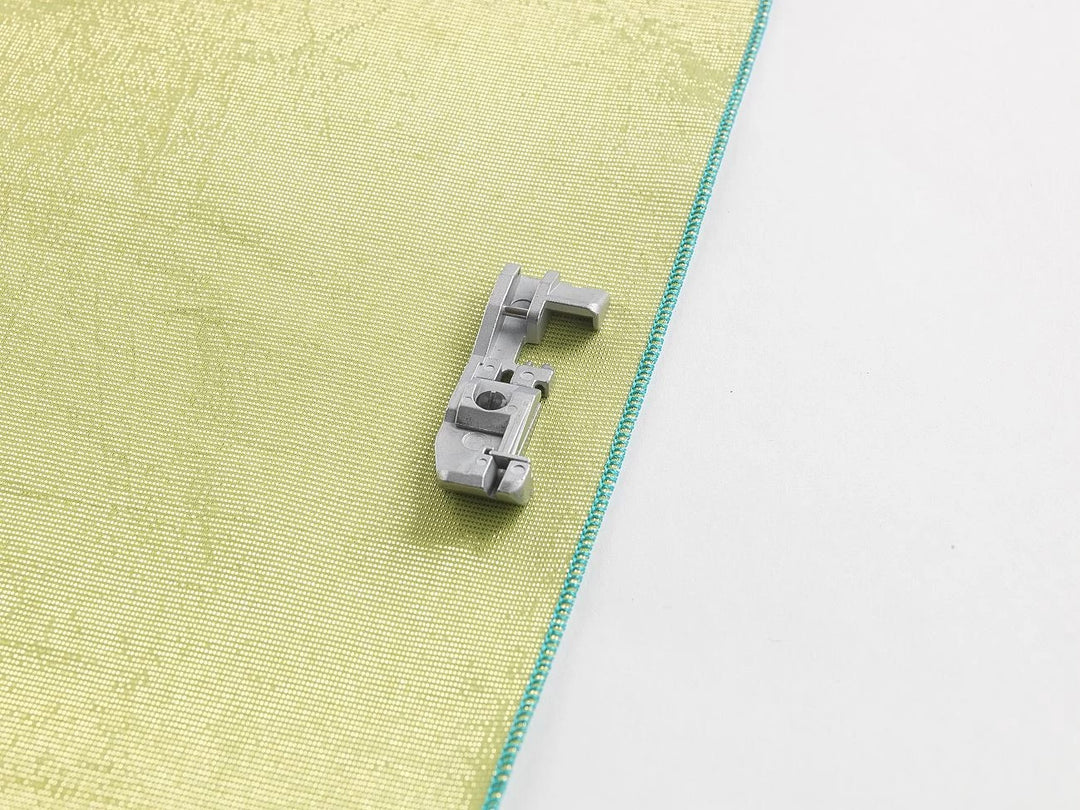 - Stichtyp: Rollsaum mit zwei Fäden im unteren Greifer oder drei oberer Greiferfaden umwickelter Rollsaum