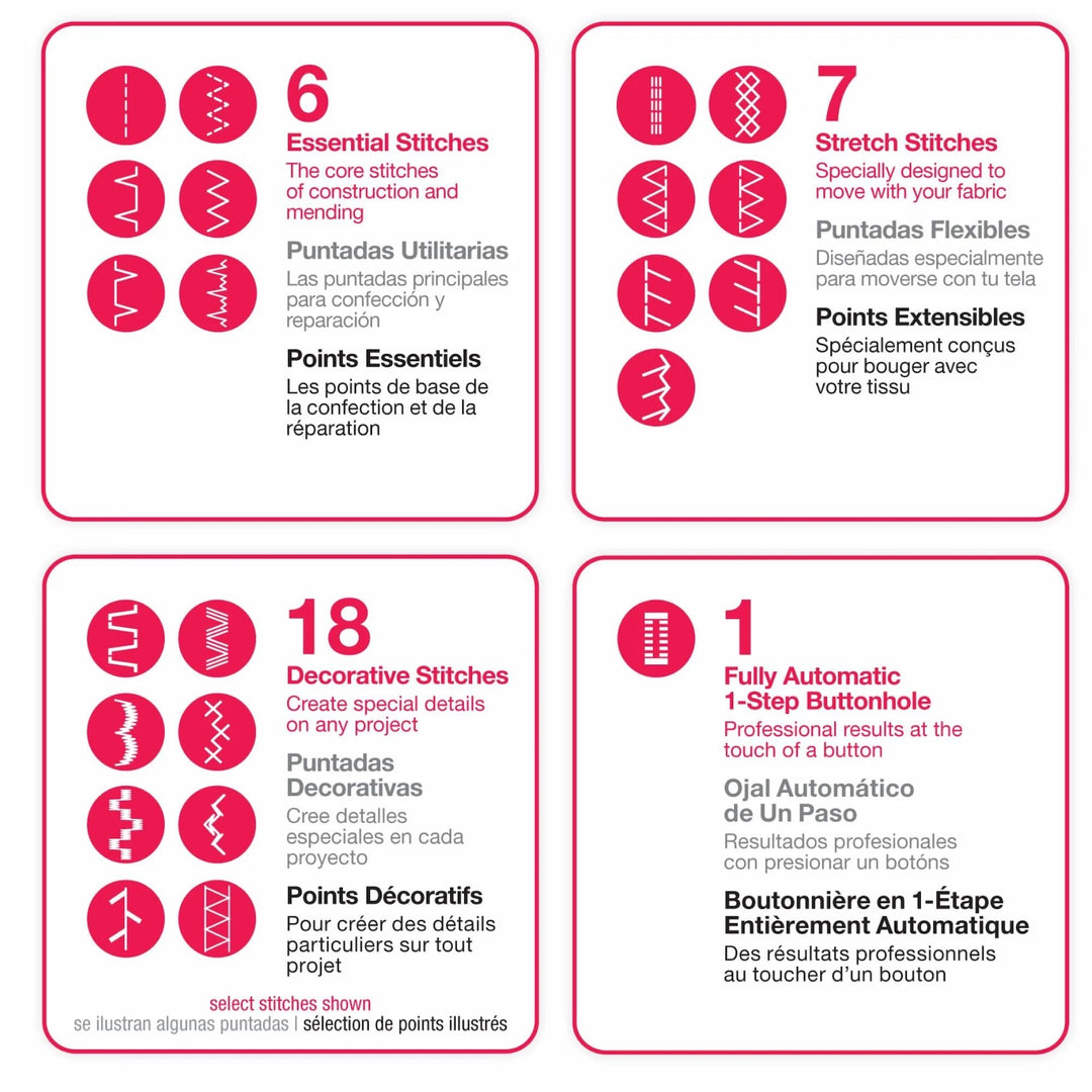 Built-In Stitches (32) - Choose from a variety of stitches for basic sewing, decorative sewing, and more.