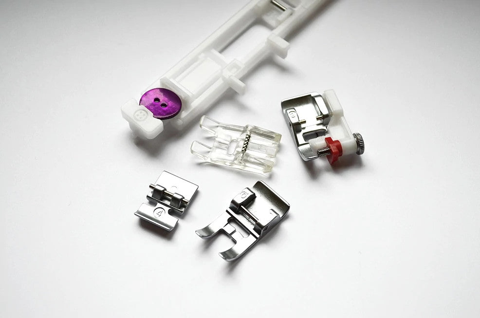 Five essential presser feet included, with many optional accessories available to expand your sewing experience.
